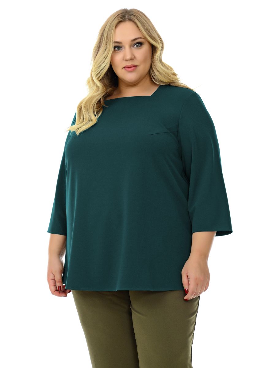 Блуза свободная, с вырезом "карэ", цвет зеленый