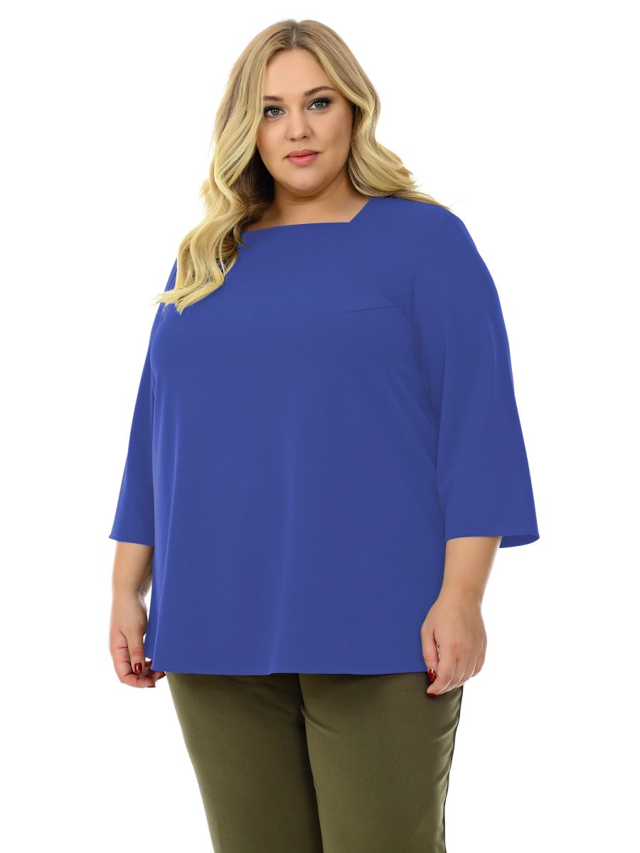 Блуза свободная, с вырезом "карэ", цвет васильковый
