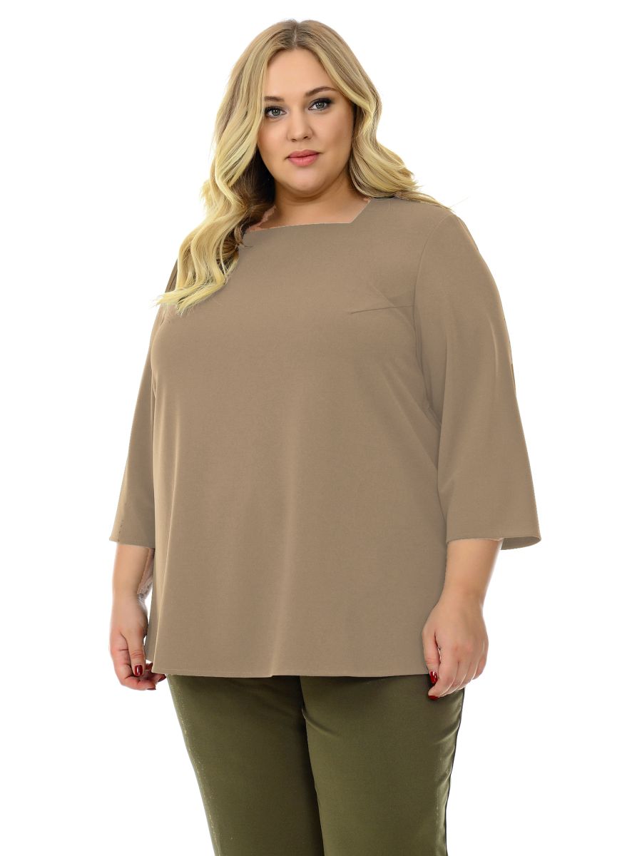 Блуза свободная, с вырезом "карэ", цвет кофейный