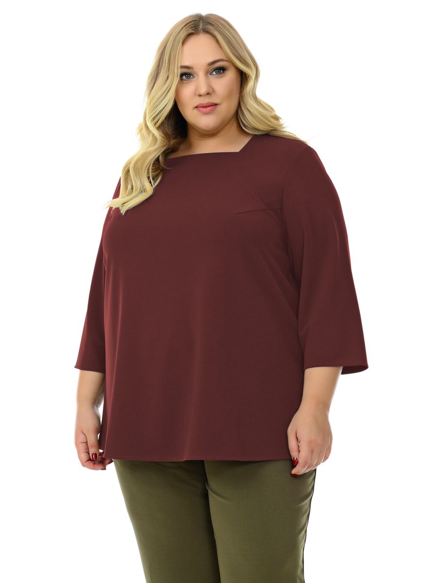 Блуза свободная, с вырезом "карэ", цвет бургунди