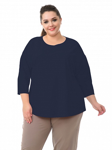 Блуза свободная из крепа с эластаном, цвет темно-синий