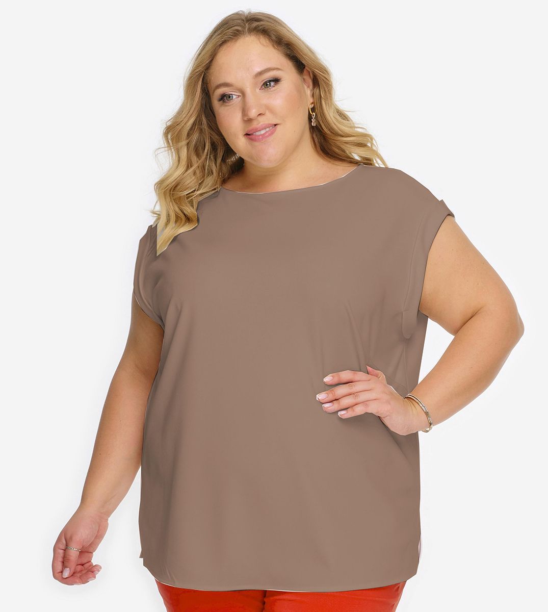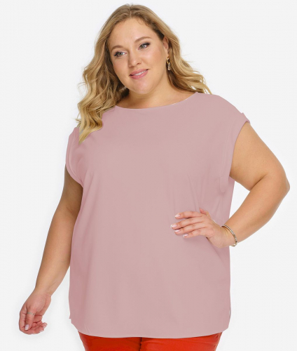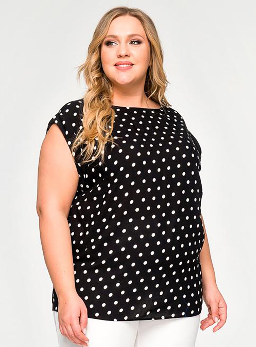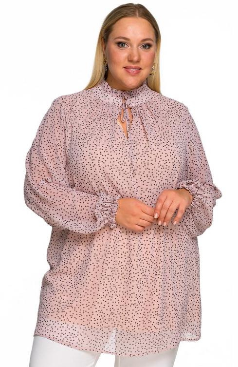 Блуза со стоечкой, шифон пудровый в черный горошек
