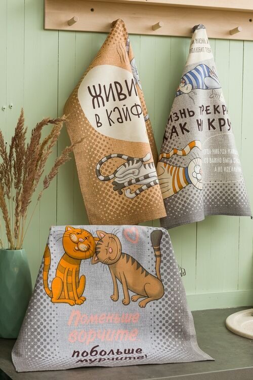 К-т полотенец "Кошачьи тайны" 50*60 см. - 3 шт. рогожка хлопок 100%