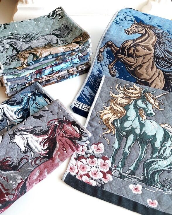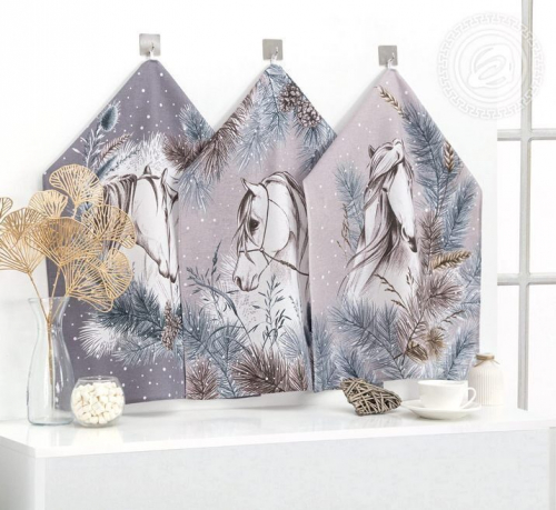 Полотенце "Лошади 2026" тканное стеганое 25*50 см. хлопок 100%