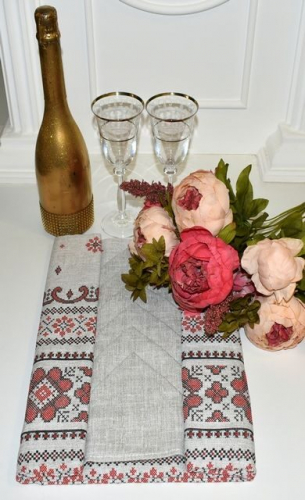 Столовый набор "Вышиванка"-сер.:скатерть 150*180 см.+6 салф. рогожка