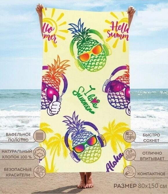 Полотенце банное "Солнечный остров" 80*150 см. вафля хлопок 100%