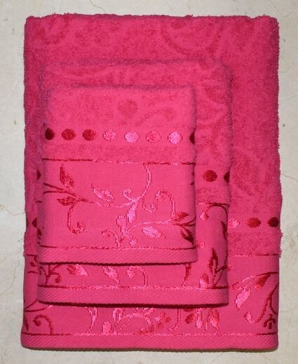 Набор махровых полотенец жаккард "Подарочный"-фуксия 3 шт (40*70 см, 50*90 см,70*130 см) в индив. упак. хлопок 100%