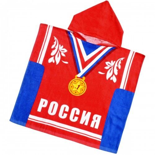 Детское пончо "Чемпион" 60*120 см. велюр-махра хлопок 100%