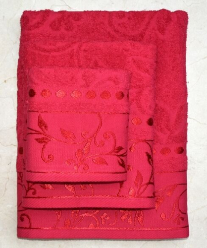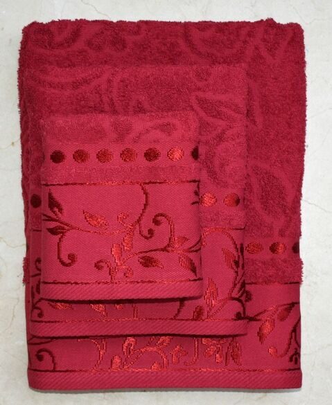 Набор махровых полотенец жаккард "Подарочный"-бордо 3 шт (40*70 см, 50*90 см,70*130 см) в индив. упак. хлопок 100%