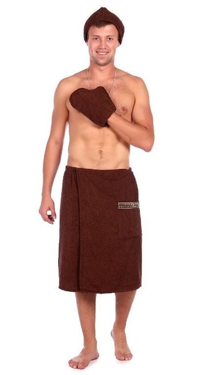 Комплект мужской для бани и сауны ШОКОЛАД махровый 3 пр. (накидка-парэо, чалма, рукавица) хлопок 100%