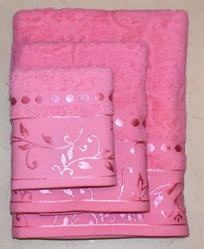 Набор махровых полотенец "Трио"-розовый 3 шт (40*70 см, 50*90 см,70*130 см) в индив. упак. хлопок 100%