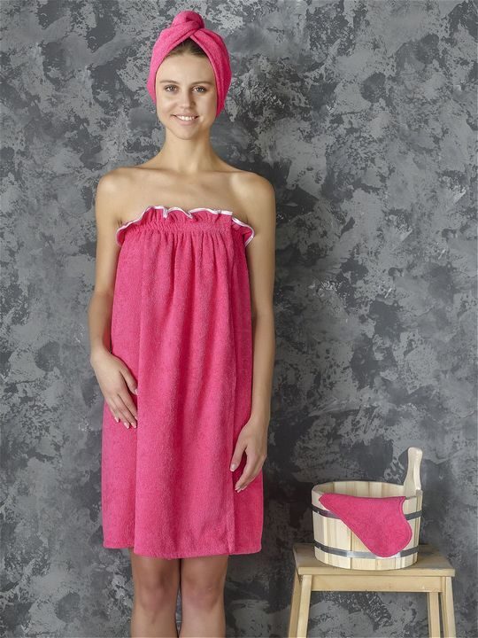 Комплект женский для бани и сауны МАЛИНА махровый 3 пр. (накидка-парэо, чалма, рукавица) хлопок 100%