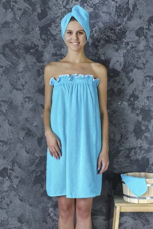 Комплект женский для бани и сауны БИРЮЗА махровый 3 пр. (накидка-парэо, чалма, рукавица) хлопок 100%