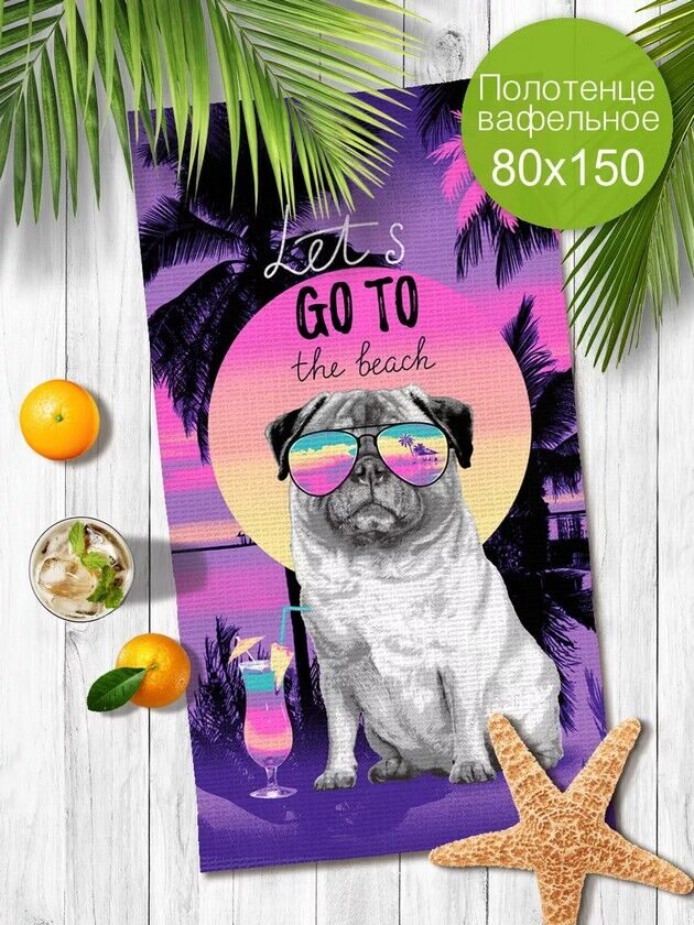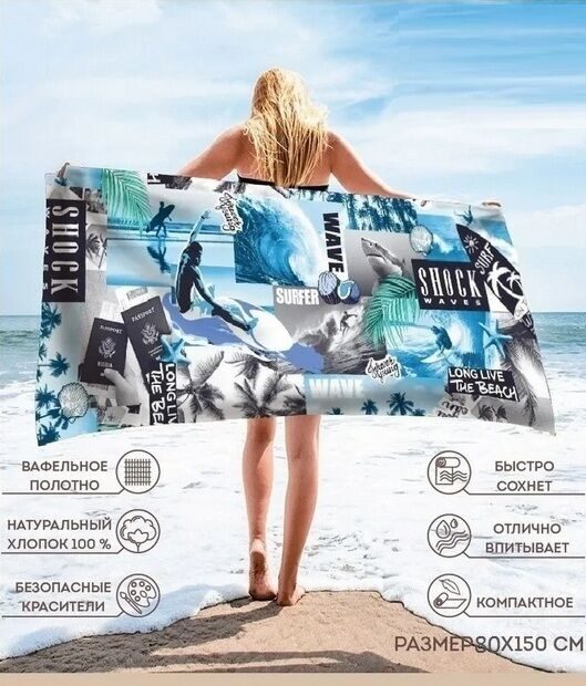 Полотенце банное "Яркий отдых" 80*150 см. вафля хлопок 100%