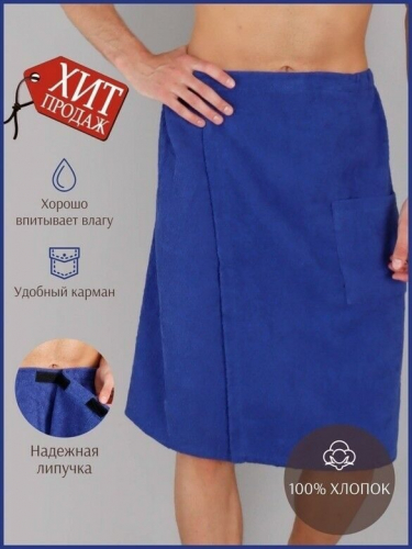 Килт мужской для бани и сауны СИНИЙ махровый хлопок 100%