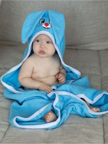 Уголок махровый детский "Ушастик"-БИРЮЗА 95*95 см. хлопок 100%