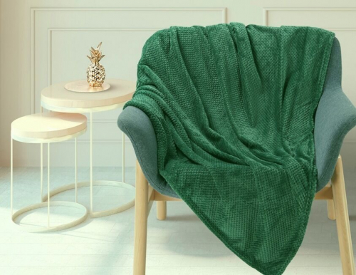 Покрывало-плед КОРАЛ-флис жаккард "Турмалин"-зеленый охотничий 150*200 см.
