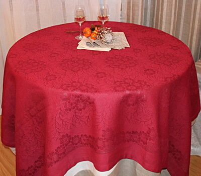 Скатерть льняная жаккардовая "Магнолия"-красное вино 150*150 см. п/лен