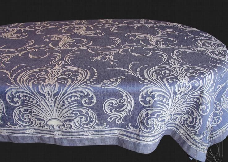Скатерть льняная жаккардовая "Магнолия"-василек 150*250 см. п/лен