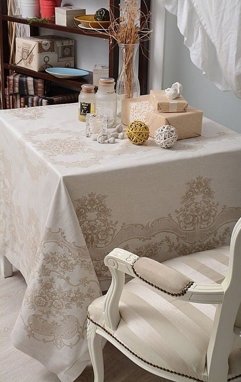 Скатерть Премиум "Французский мотив"-бежев. п/лен 140*180 см.