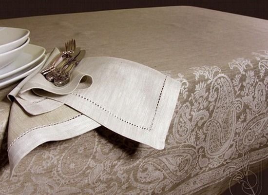 Скатерть льняная жаккардовая "Магнолия"- п/вар. 150*200 см. п/лен