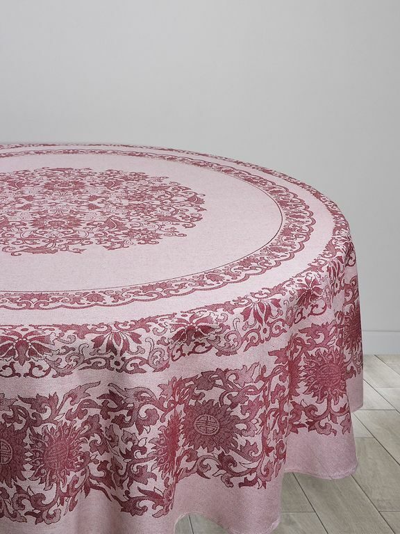 Скатерть Премиум круглая "Восточный мотив"-бордо D 178 см. п/лен