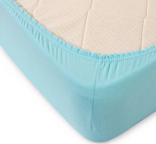 Трикотажная простыня на резинке (голубая) 90*200 см. хлопок 100%