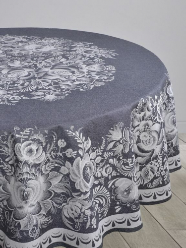 Скатерть Премиум круглая "Цветы"-графит D 178 см. п/лен