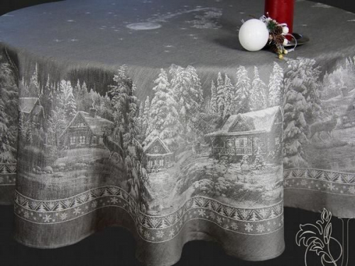 Скатерть Премиум круглая "Рождество"-сер. D 178 см. п/лен