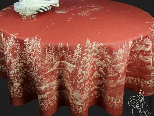 Скатерть Премиум круглая "Рождество"-красн. D 178 см. п/лен