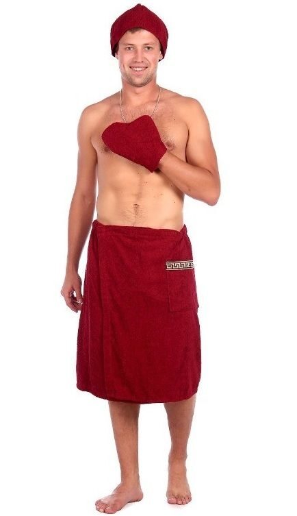 Комплект мужской для бани и сауны БОРДО махровый 3 пр. (накидка-парэо, чалма, рукавица) хлопок 100%