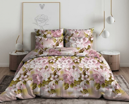 КПБ "Цветение персика"-розов. бязь хлопок 100% 1, 5 сп.