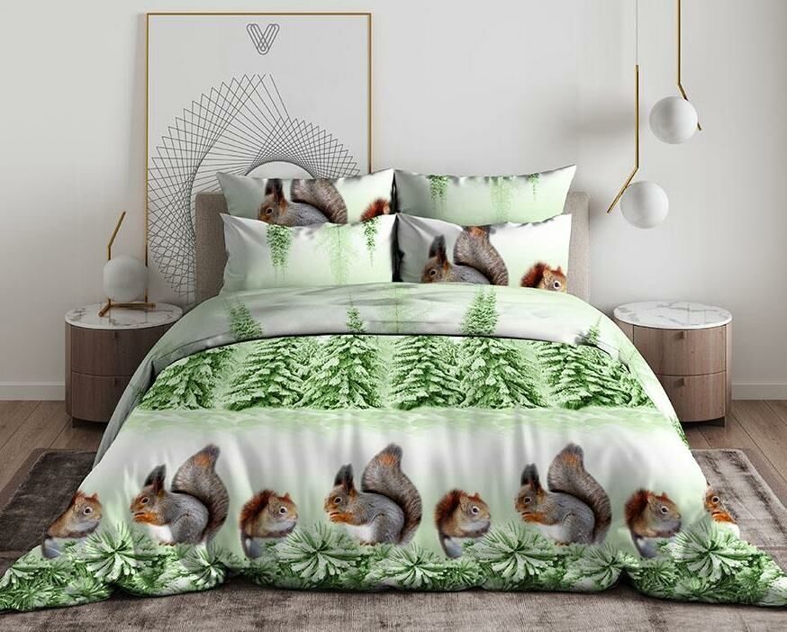 КПБ "Белочки"-зелен. бязь хлопок 100% Семейный