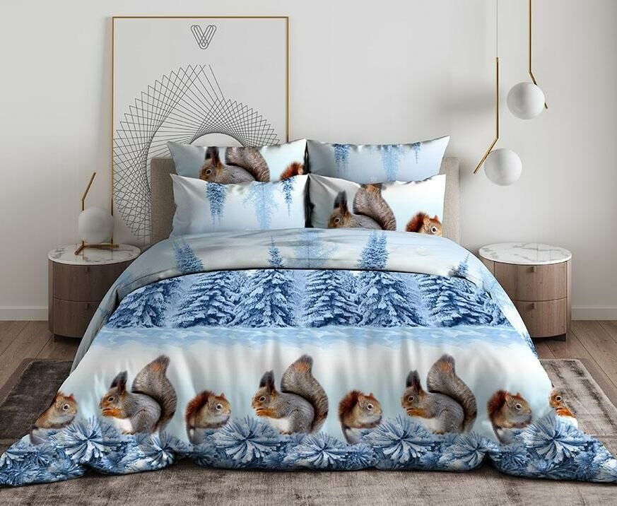 КПБ "Белочки"-голуб. бязь хлопок 100% Семейный