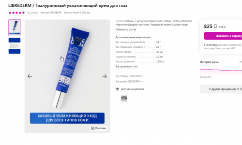 LIBREDERM Гиалуроновый крем широкого действия для кожи вокруг глаз 20 мл