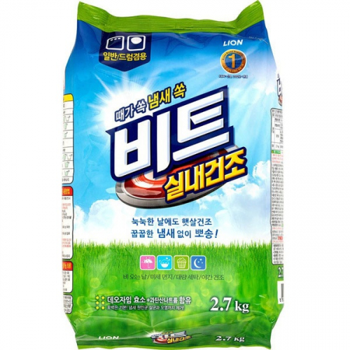 LION Beat in door (Pouch) Концентрированный стиральный порошок для автоматической и ручной стирки "Beat in door" Сушка в помещении 2,7кг