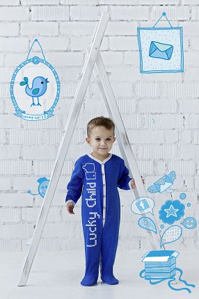 Комбинезон с капюшоном Ангелочки бело-голубой