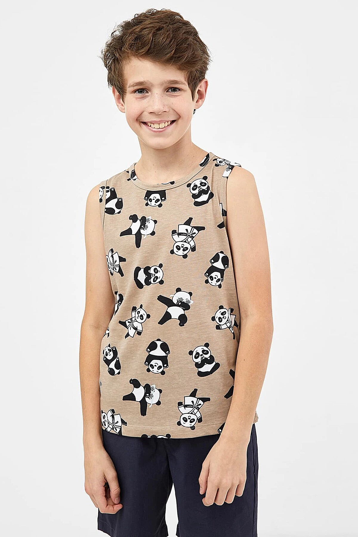 Майка 2шт MARK FORMELLE #815181Панды на песочно -сером +св.голубой