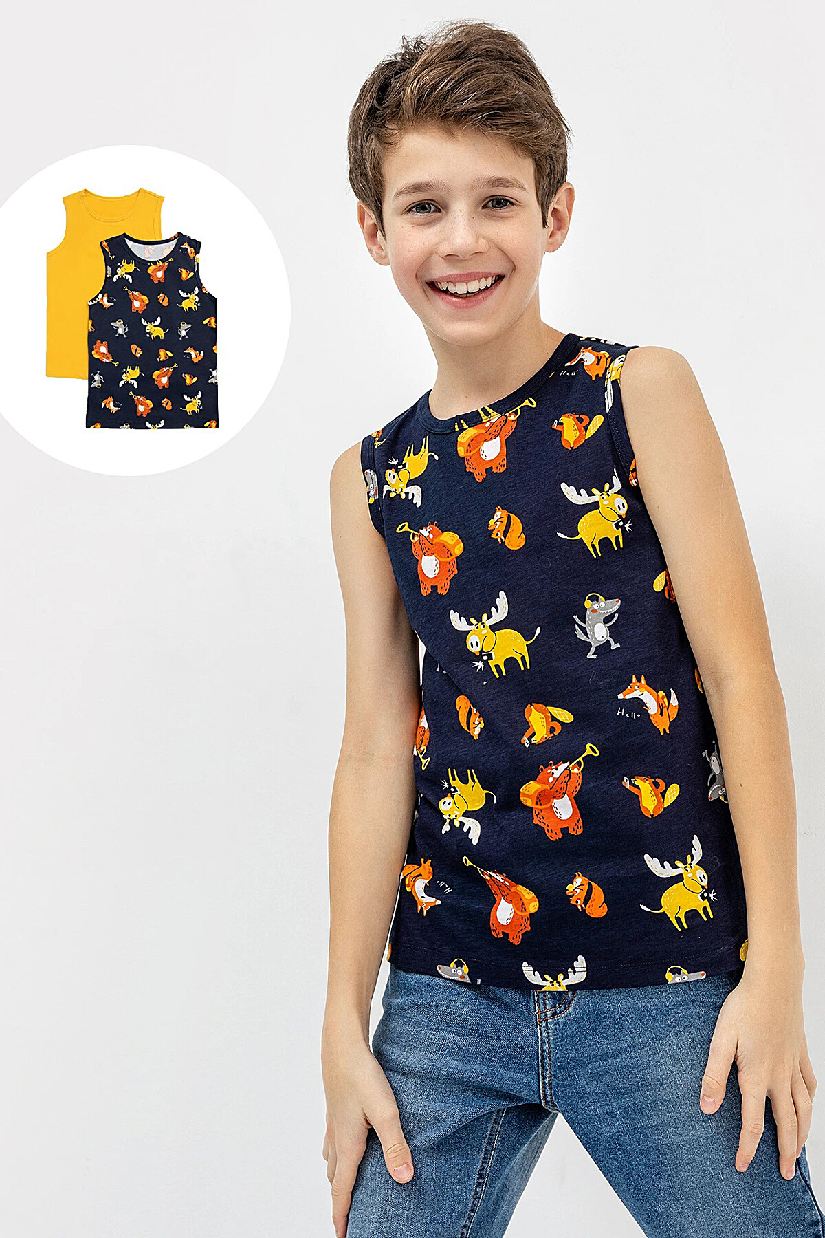 Майка 2шт MARK FORMELLE #820069Звери на синем +охра