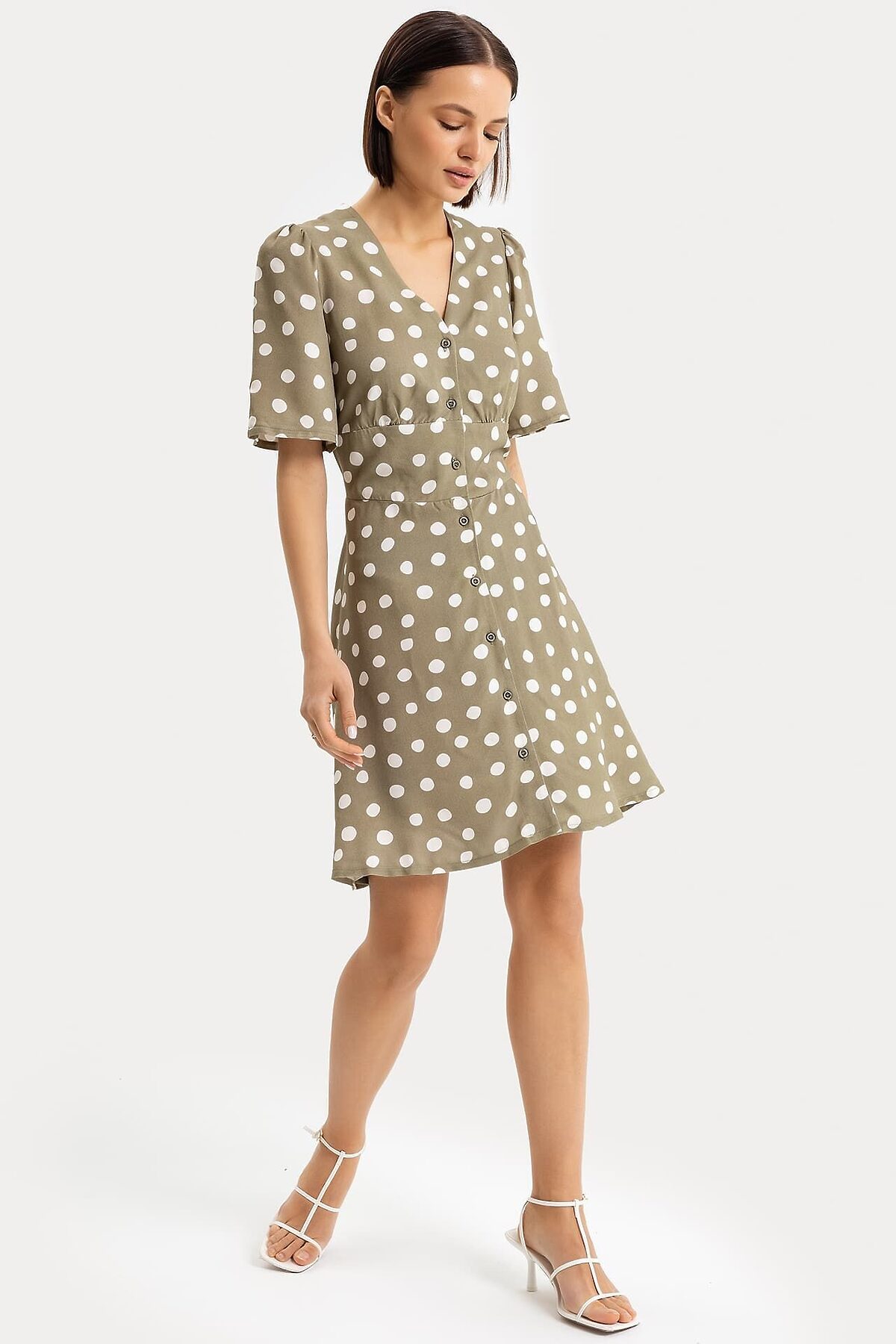 Платье MARK FORMELLE #888514 22/21901П-9 Белый горох на т.хаки