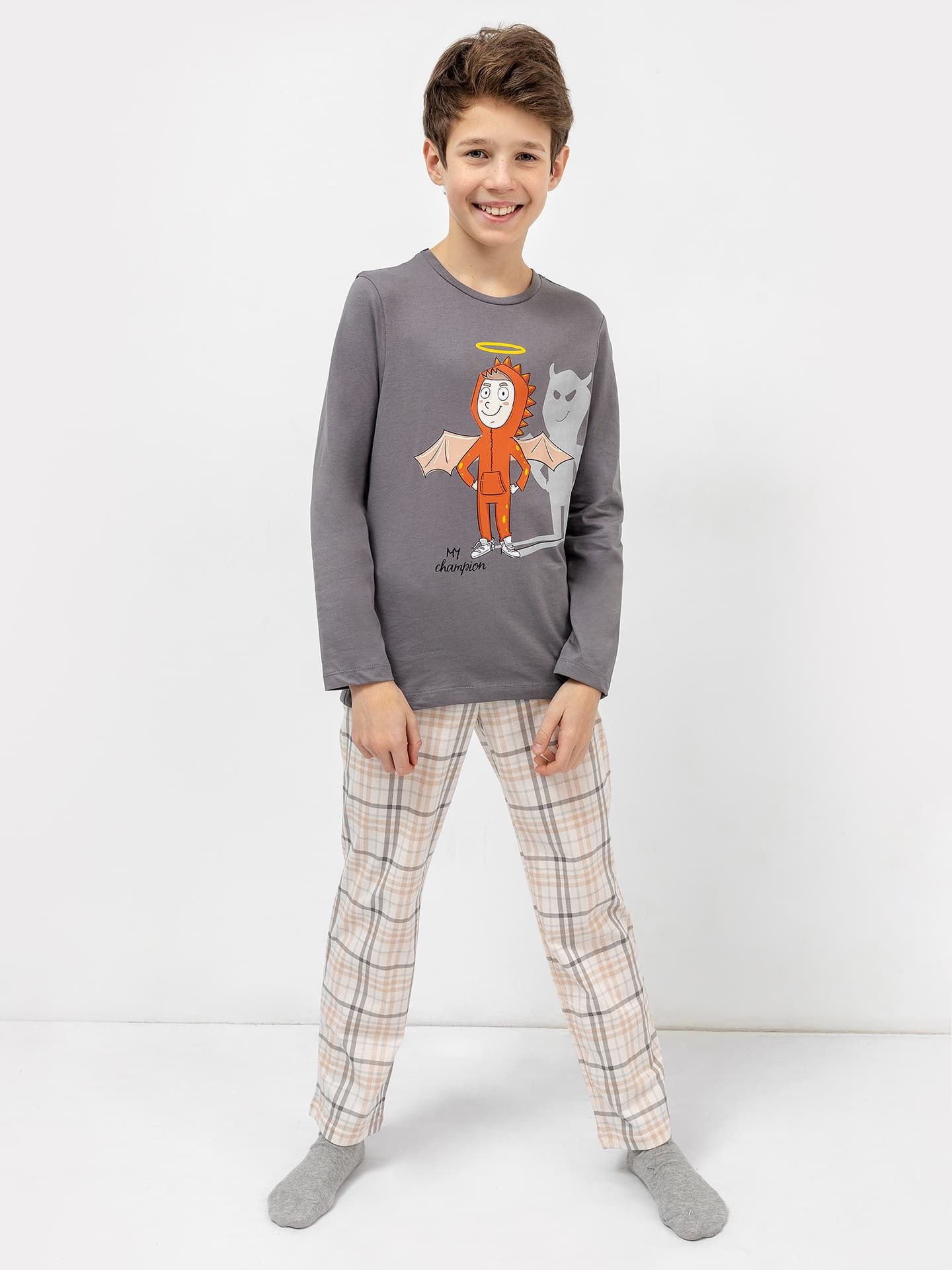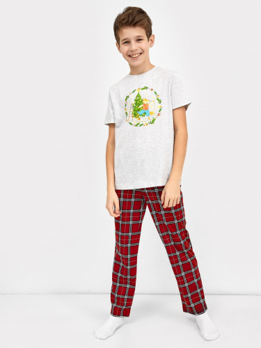 КОМПЛЕКТ ДЛЯ МАЛЬЧИКОВ (ФУТБОЛКА, БРЮКИ) 563319 563319 серый меланж 4306-А +красная клетка 18114 Mark Formelle