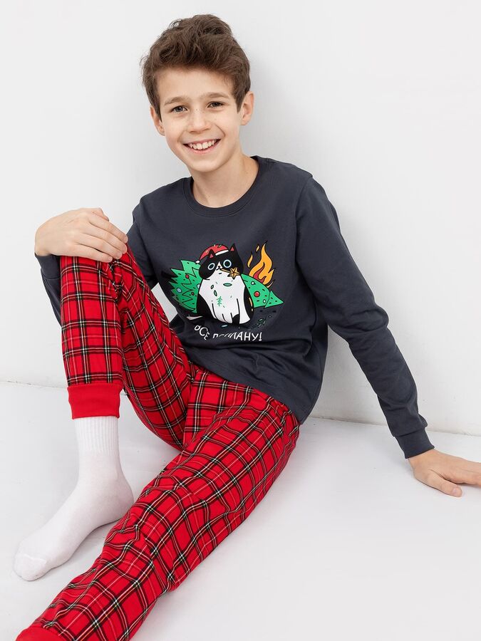 КОМПЛЕКТ ДЛЯ МАЛЬЧИКОВ (ДЖЕМПЕР, БРЮКИ) 563311 563311 графит +красная клетка 18114 Mark Formelle