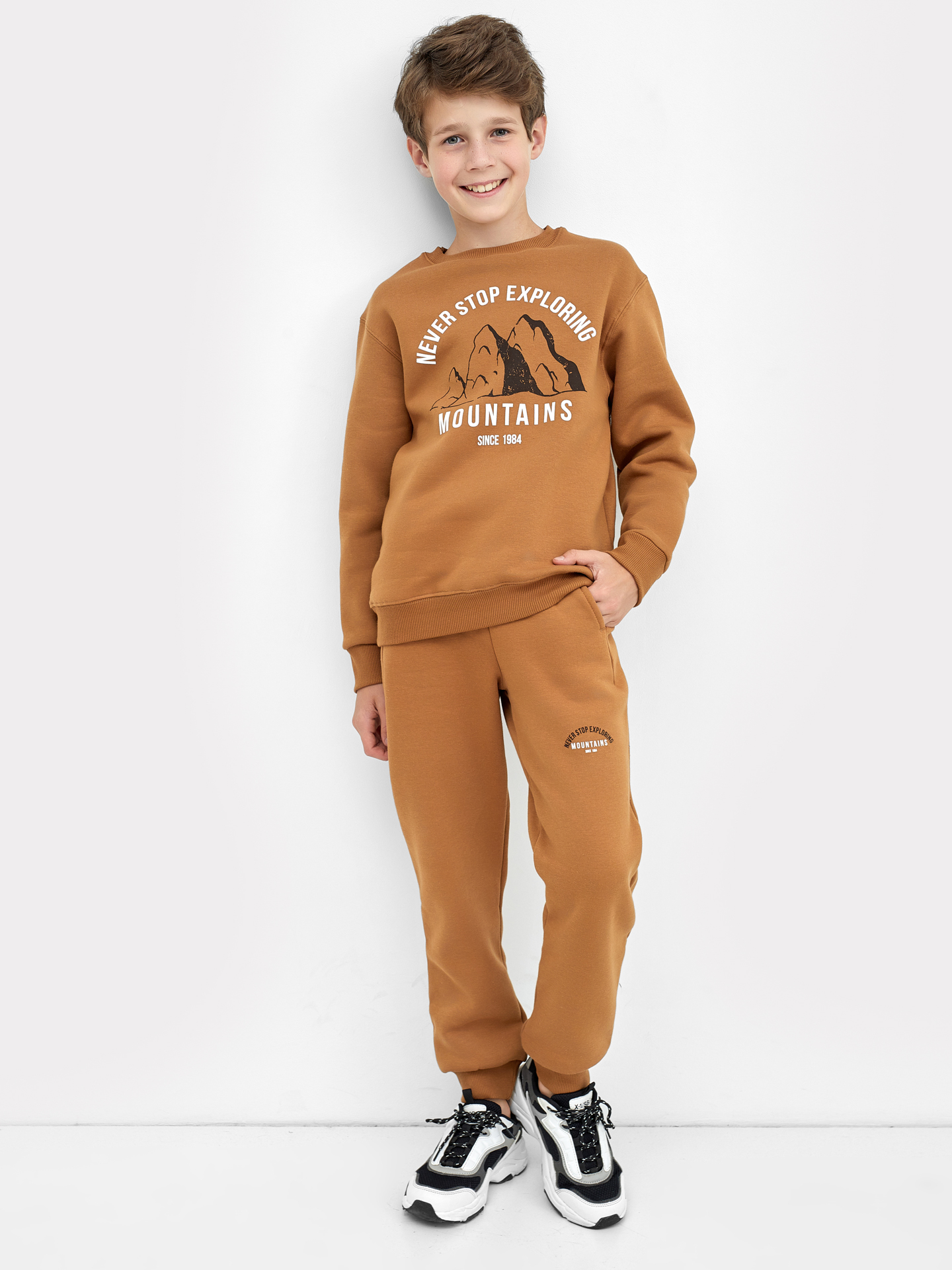 БРЮКИ ДЛЯ МАЛЬЧИКОВ 183362 22/19528П-7П 183362 коричневый +печать 59512 Mark Formelle
