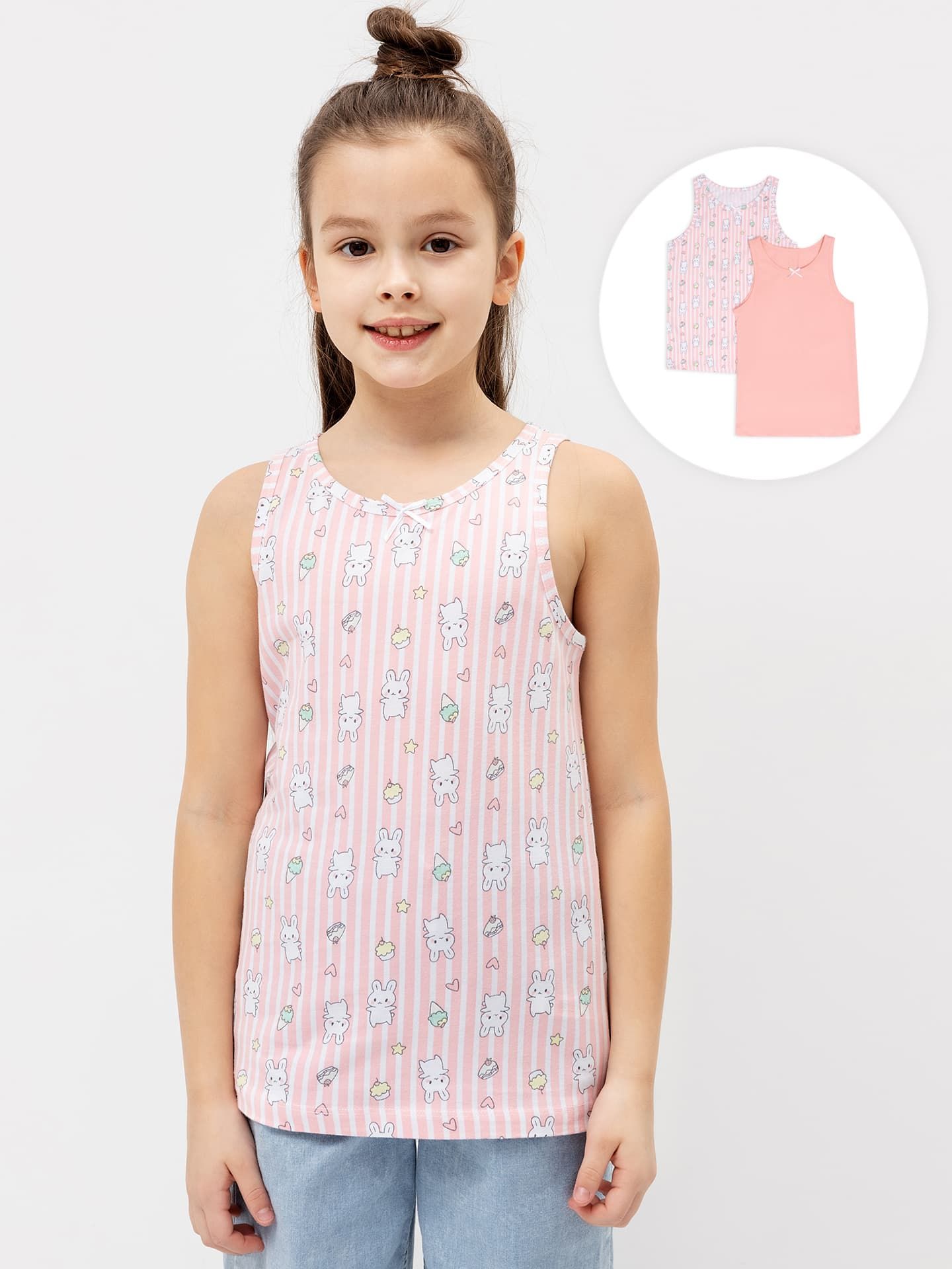 МАЙКА ДЛЯ ДЕВОЧЕК (2ШТ) 427739-2 427739-2 зайчики на полоске +розовый 1050 Mark Formelle