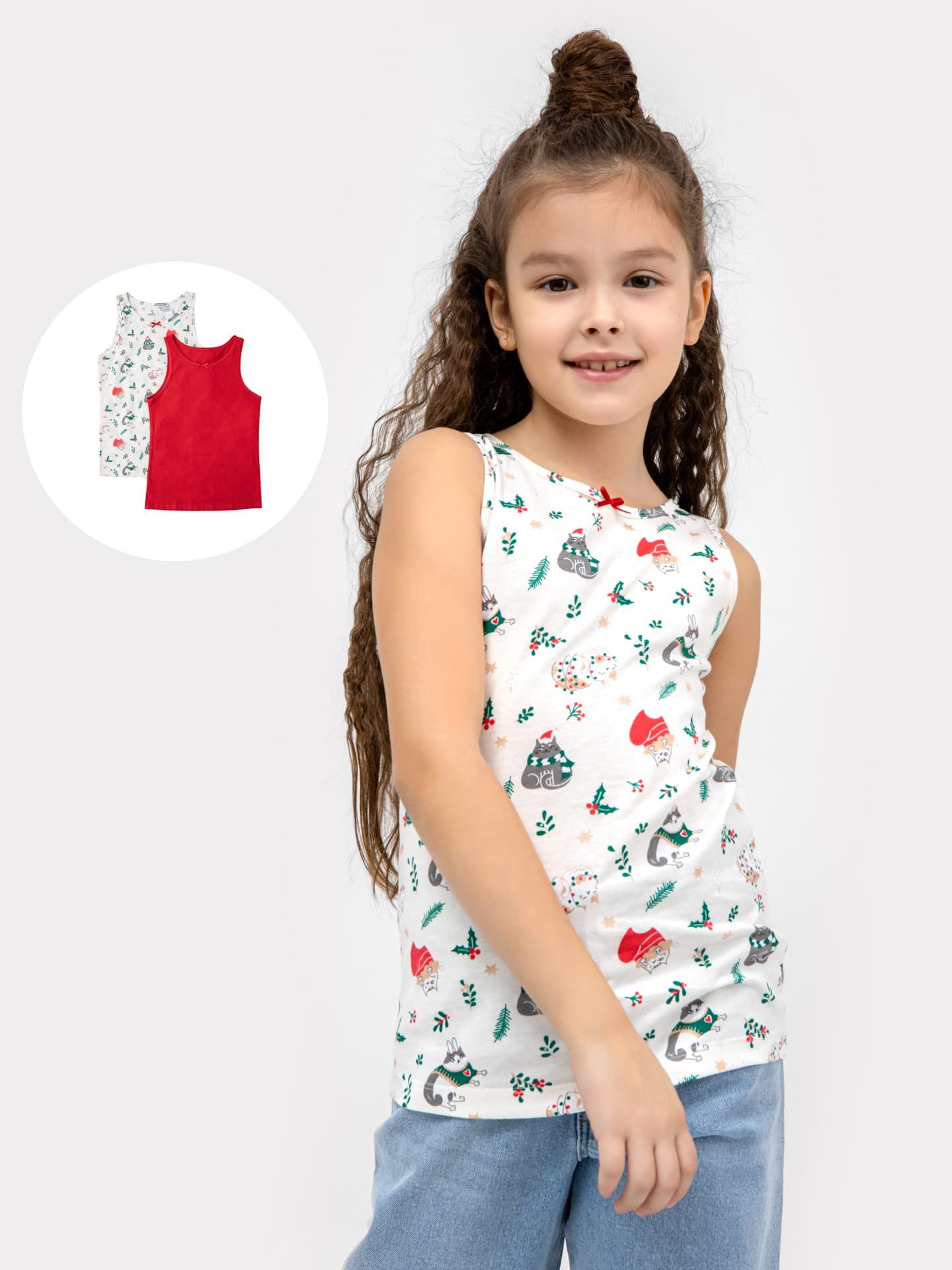 МАЙКА ДЛЯ ДЕВОЧЕК (2ШТ) 427739-2 427739-2 котики на молочном +красный 1050 Mark Formelle