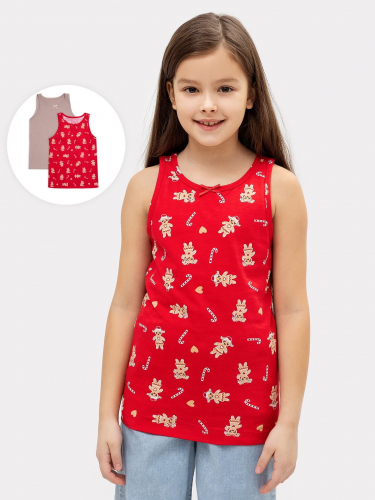 МАЙКА ДЛЯ ДЕВОЧЕК (2ШТ) 427739-2 427739-2 печеньки на красном +бежевый 1050 Mark Formelle