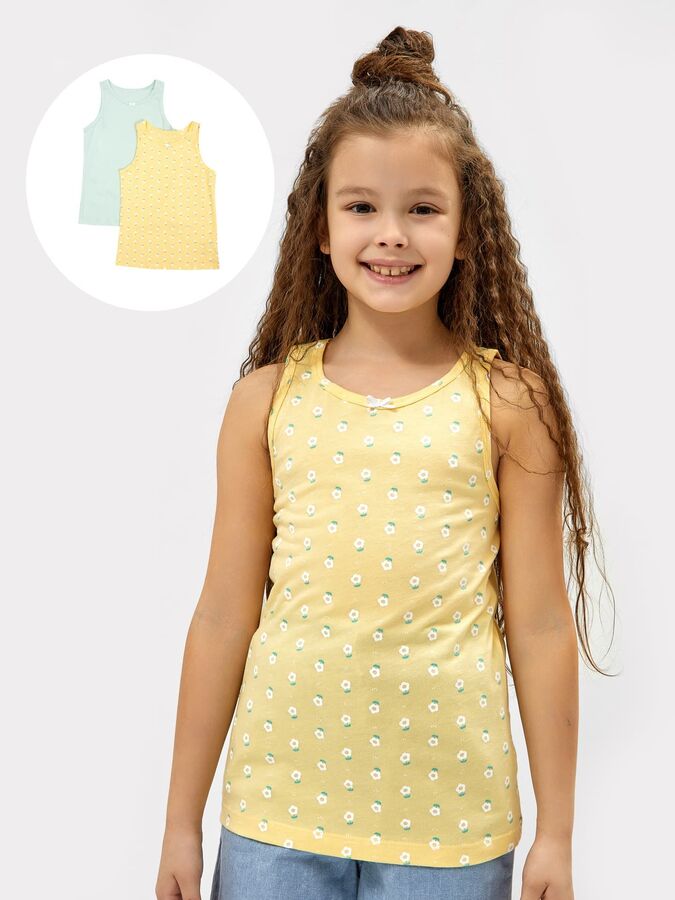 МАЙКА ДЛЯ ДЕВОЧЕК (2ШТ) 427739-2 427739-2 цветочки на желтом +ментол 1050 Mark Formelle