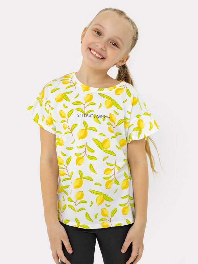 ФУТБОЛКА ДЛЯ ДЕВОЧЕК (верхняя) 117848 117848 лимоны на белом 75369 Mark Formelle