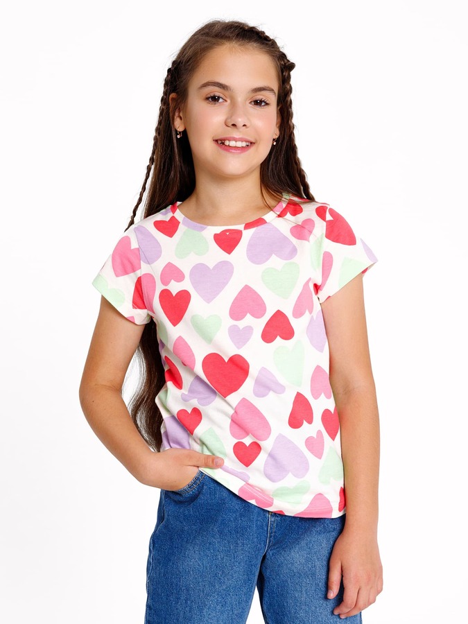 ФУТБОЛКА ДЛЯ ДЕВОЧЕК (верхняя) 117892 117892 сердечки на молочном 1050 Mark Formelle