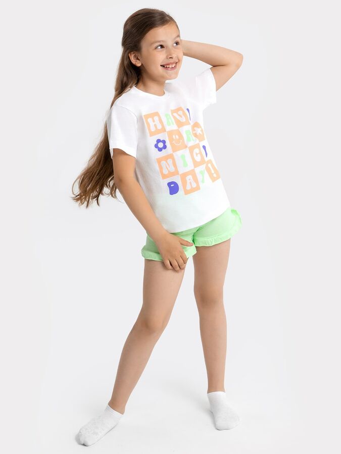 КОМПЛЕКТ ДЛЯ ДЕВОЧЕК (ДЖЕМПЕР, ШОРТЫ) 567734 567734 белый +салатовый +печать 18113 Mark Formelle
